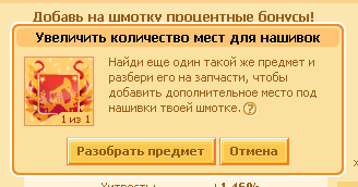 - для добавления одного дополнительного места вам потребуется еще одна шмотка такого же уровня (не модифицированная), на которой нет ни одной нашивки, и соответствующий уровень навыка.