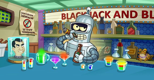 Найди в подарках голову Бендера и получи самого крутого робота во Вселенной! Естественно, он тут же отправится строить бар, куда ты сможешь заглядывать. Бендер будет угощать тебя своим фирменным пойлом, которое тем круче, чем выше МФ!