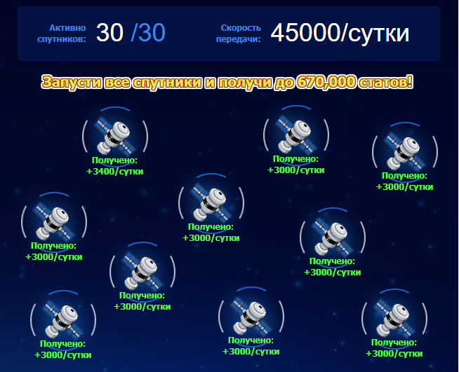 Запусти все спутники, чтобы получить до 300,000 супер-характеристик и 70,000 обычных статов НАВСЕГДА!