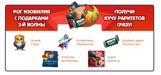 Во всех текущих подарках можно найти рог изобилия с раритетами текущего этапа.