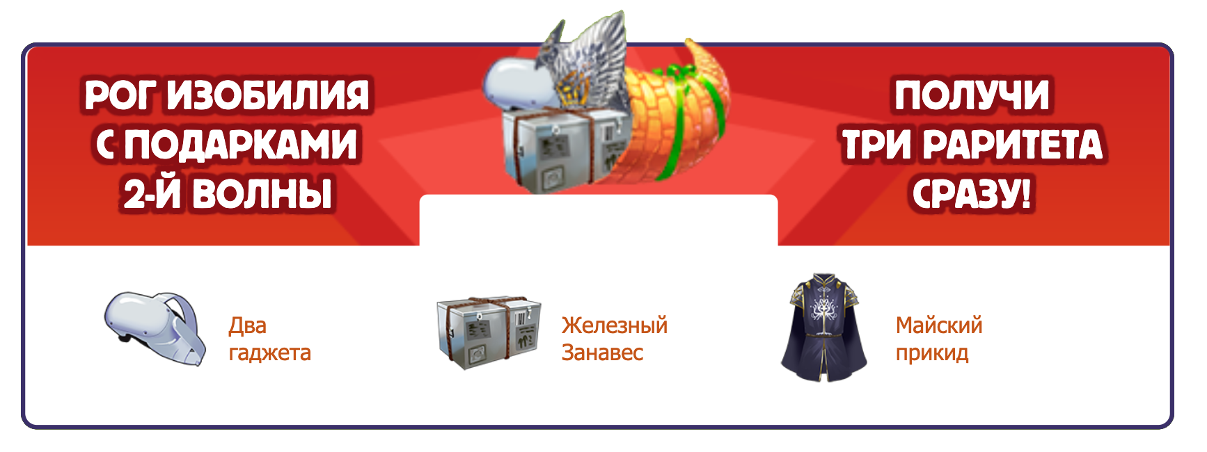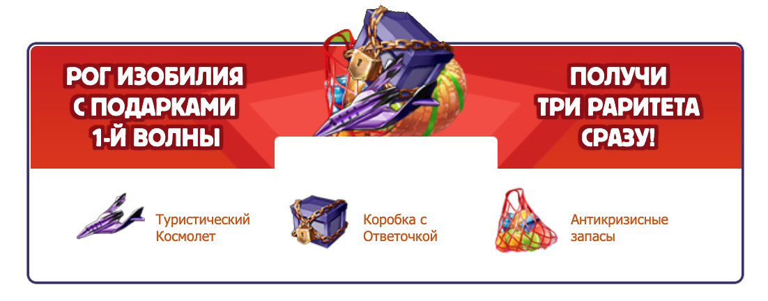 Во всех текущих подарках можно найти рог изобилия с раритетами текущего этапа.