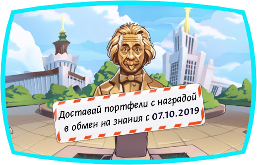 Используйте учебники из подарков, чтобы пробраться к Эйнштейну и получить шанс стать обладателем потрясающих призов, спрятанных в школьных портфелях! Торопитесь, фонтан открыт только до 14 октября (13.10.2019 23:59)!