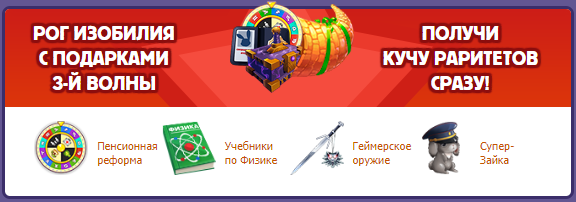 Во всех текущих подарках можно найти рог изобилия с раритетами текущего этапа.