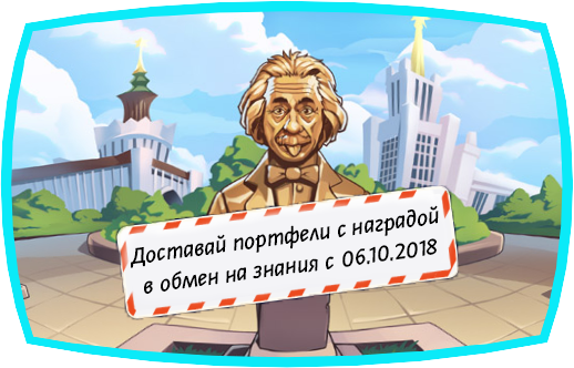 Часть крутых раритетов каким-то образом оказалась в портфелях школьников, которые они побросали около бюста Эйнштейна! Находи в подарках учебники по физике, которые позволят вам подойти к статуе учёного и попытаться вытащить портфель с клёвым призом!
