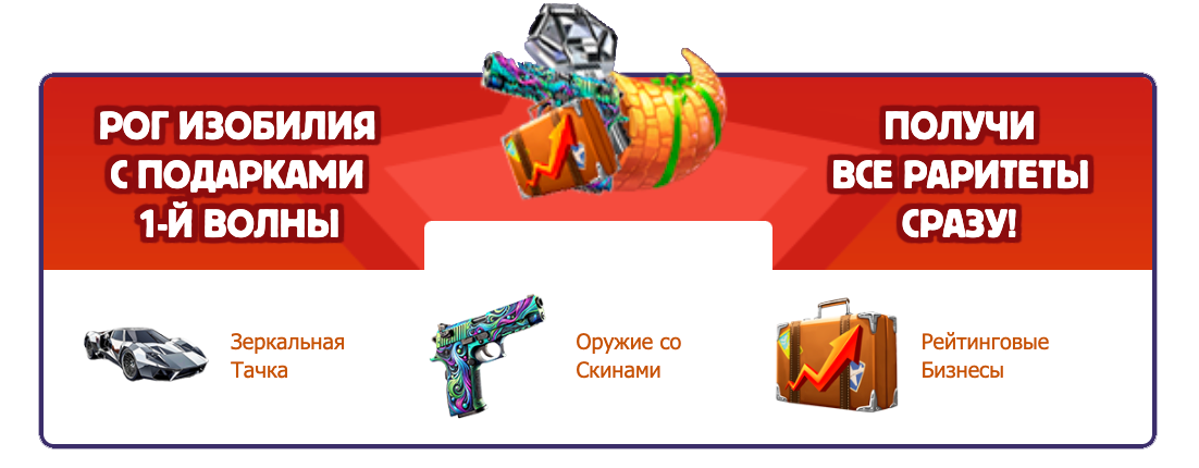 Каждая суперигра стоит 100 и приближает вас к заветному раритету. Накопи 100% и получи Гиперкар, Братские шмотки и Рейтинговые Бизнесы без ожидания возможности открывать подарки! Эти призы будет невозможно выставить на аукцион, не упустите свой шанс получить раритет!