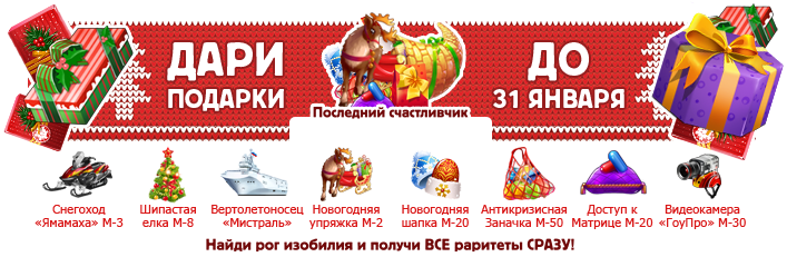 Дополнительный подарок — это дополнительный шанс стать обладателем великолепного Рога Изобилия, который содержит сразу все раритеты* этой зимы!