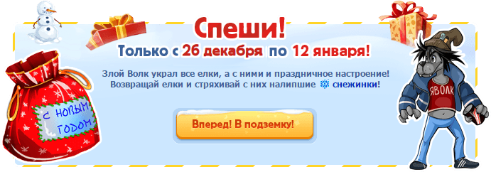 За каждый подарок вы будете получать эскимо, которое можно потратить на суперигру — призами в ней являются редкие и ценные вещи: Новогодняя Упряжка, Шипастая Ёлка и Антикризисная Заначка!